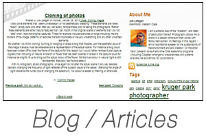 Joe is regarded as one of the best all round fine art outdoor photographers. Besides being a master outdoor fine art photographer, Joe also creates outstanding visuals that assist corporations in effectively communicating their strategic intent to the global markets and to improve appetite of their products and services through multimedia including amongst others, creative still photography web development, graphic design, video, social media, publishing and various forms of media. Visit www.catfishjoe.co.za for more commercial information.